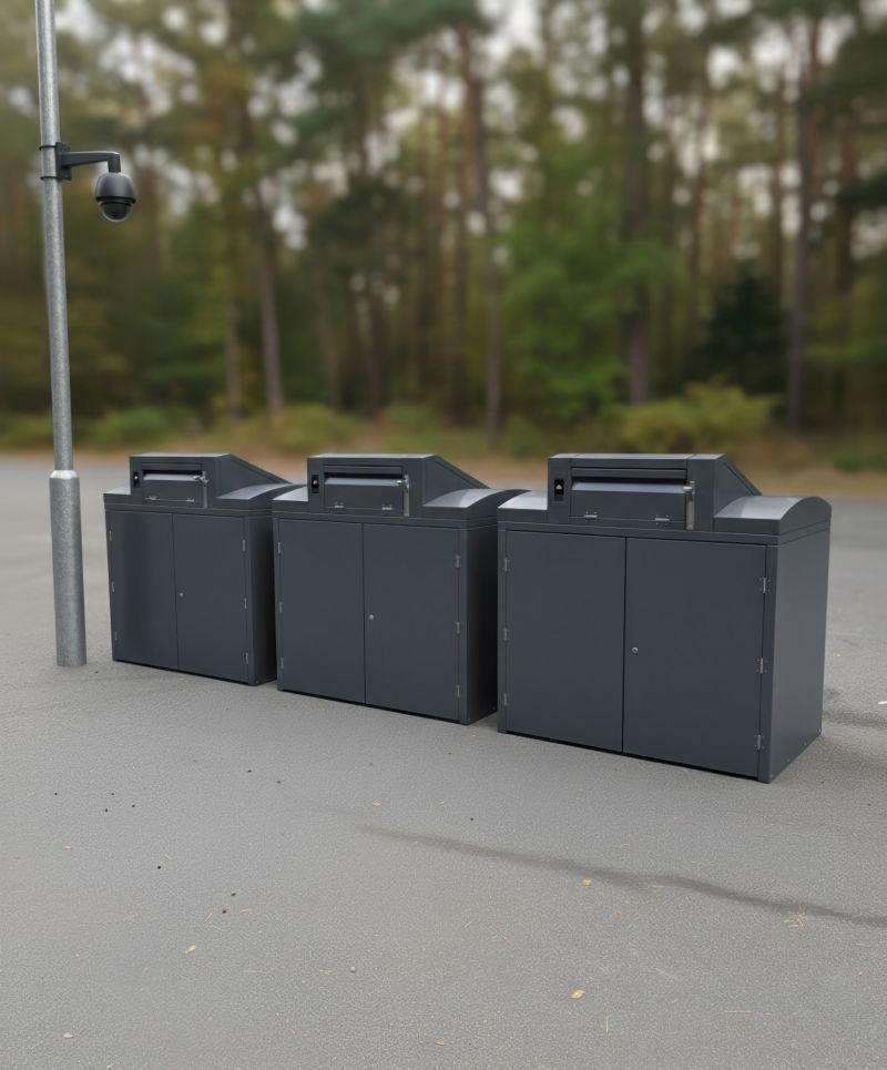 + Handelsübliche 1100-Liter-Container, einfach zu entleeren